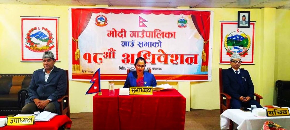 पर्वत। मोदी गाउँपालिकाको १८ औँ गाउँसभा अधिवेशन मंगलबार सम्पन्न भएको छ। अधिवेशनले विभिन्न कार्यक्रम संशोधन, ऐन तथा विधेयकहरू सर्वसम्मत पारित गरेको छ ।